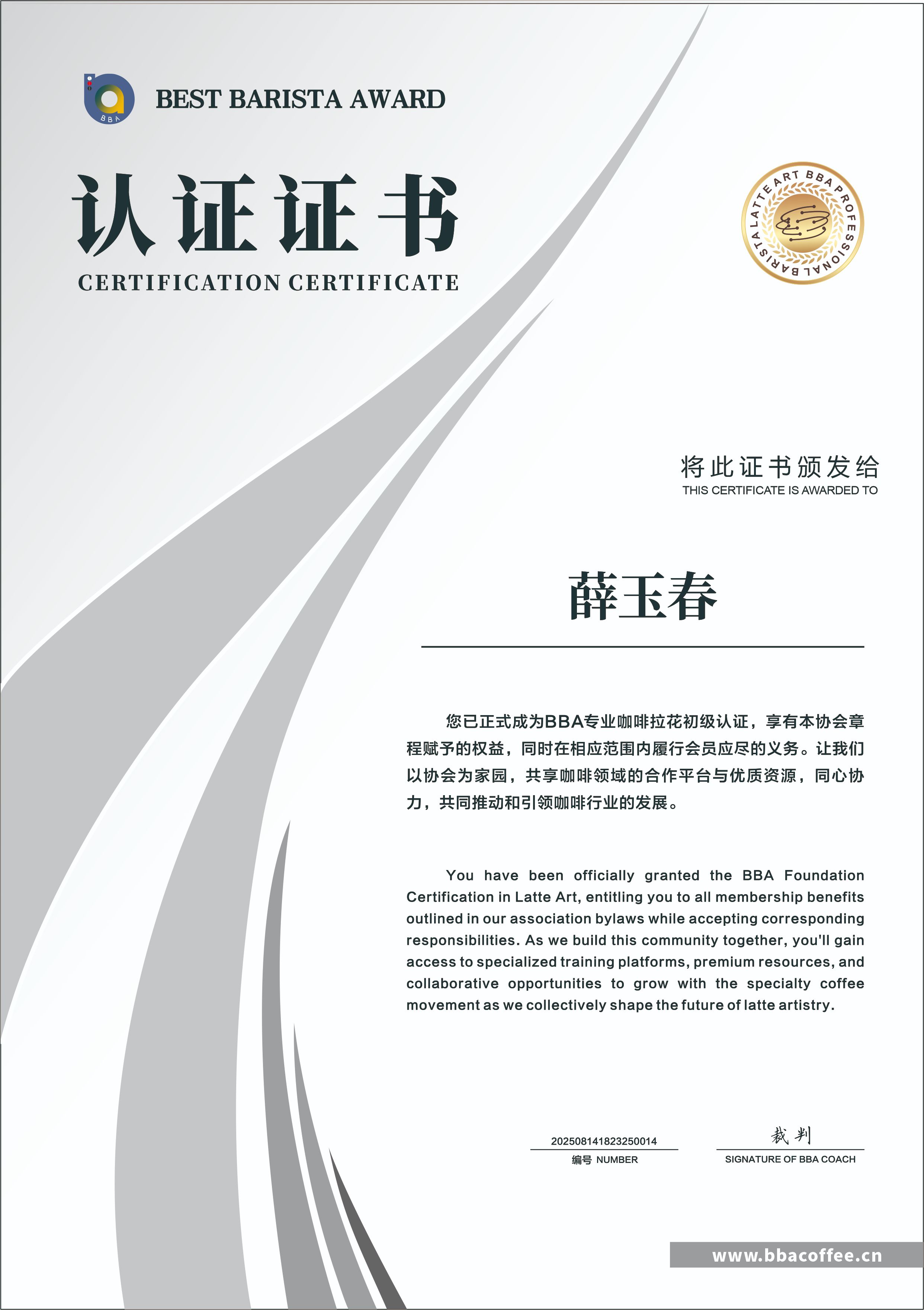 意式咖啡师技能认证yishikafeishijinengrenzheng