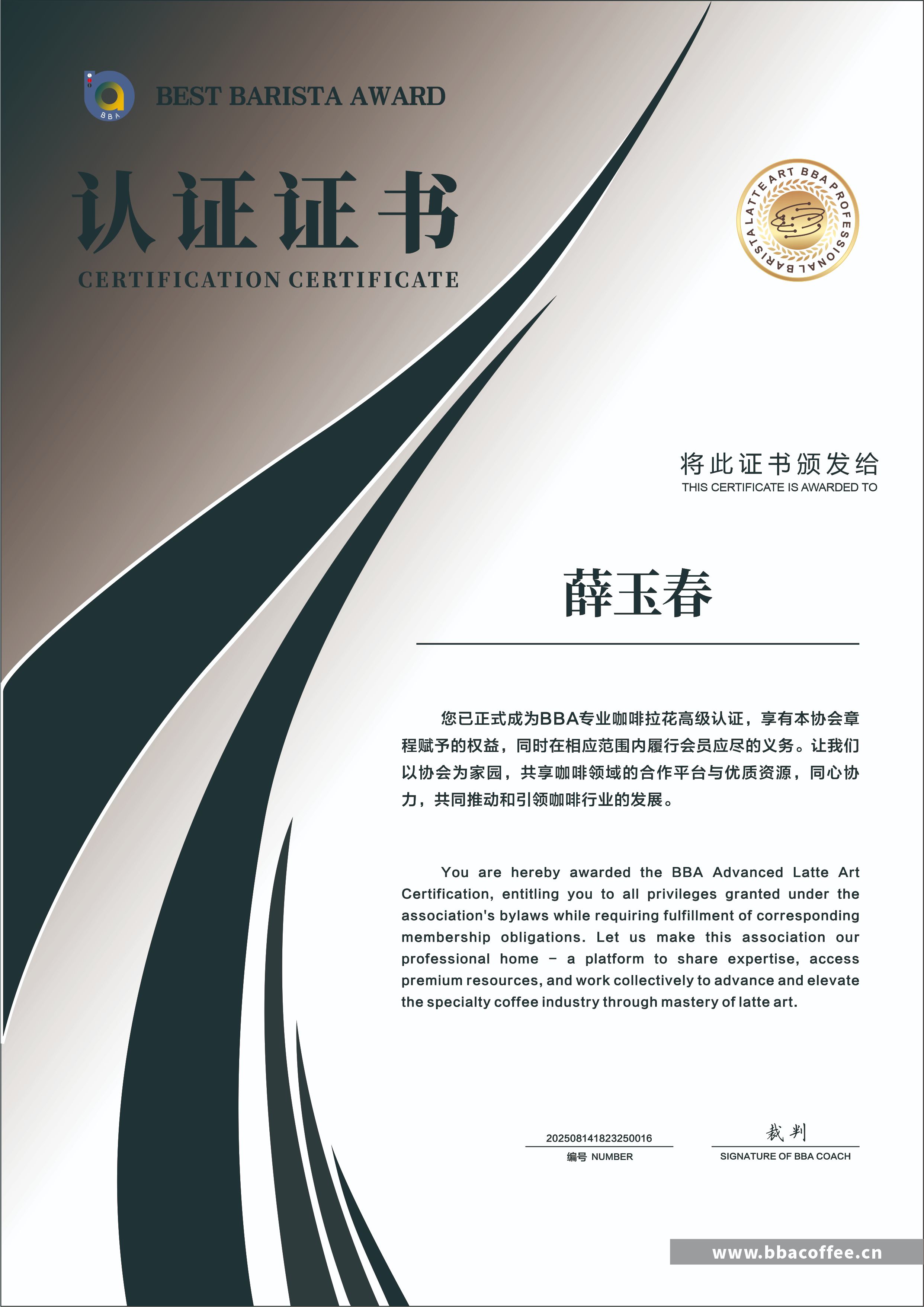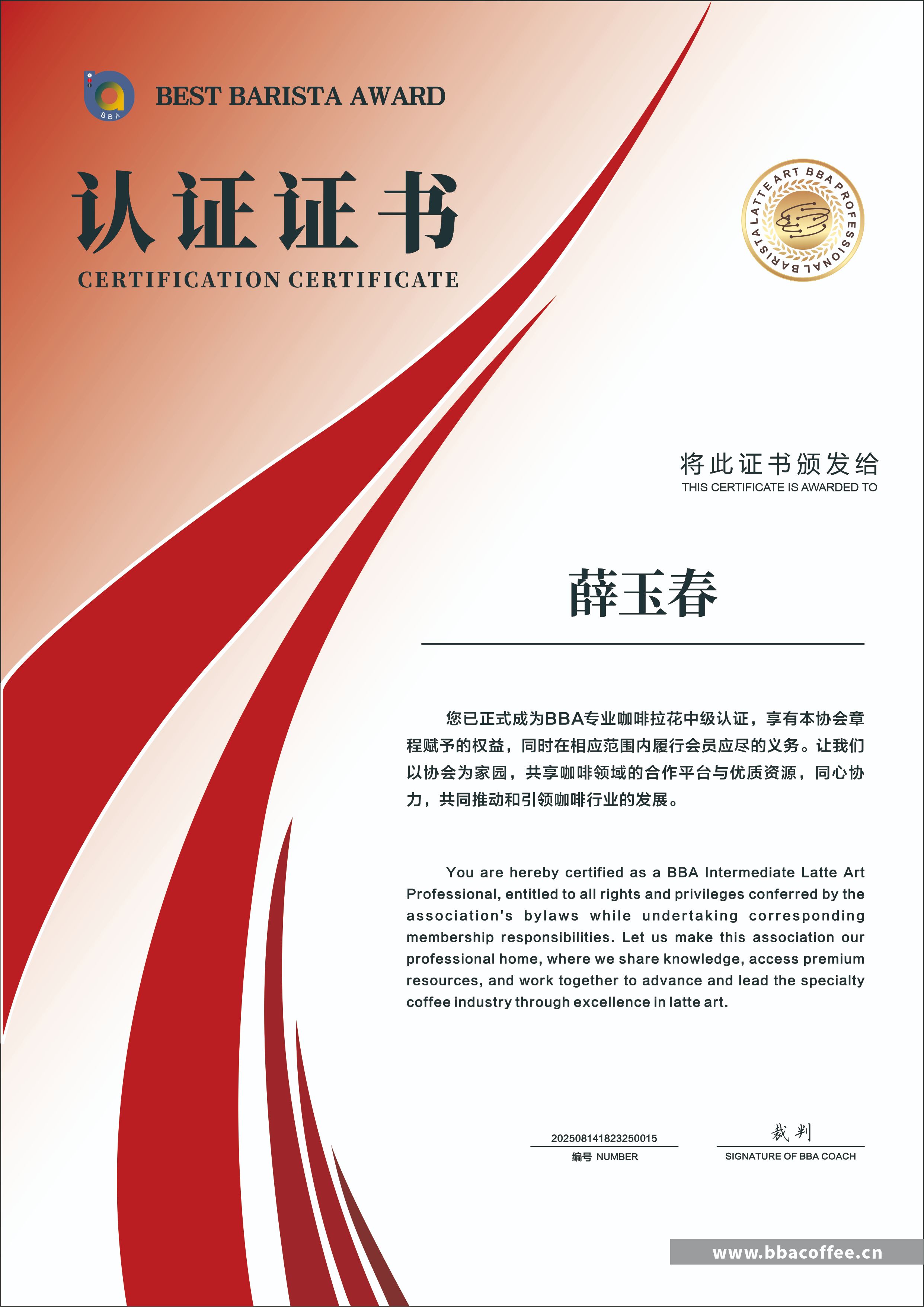 意式咖啡师技能认证yishikafeishijinengrenzheng
